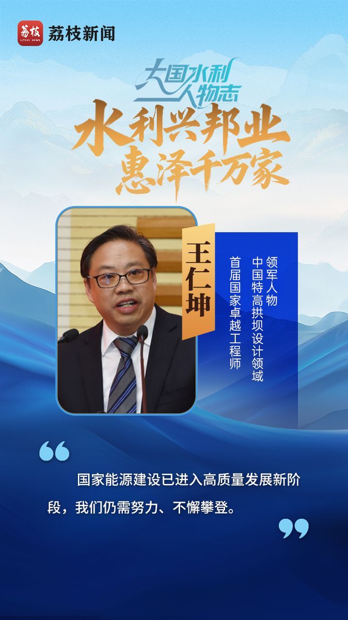 王仁坤,被誉为“我国特高拱坝设计领域的技术带头人和领军人物”,主持攻克300米级特高拱坝安全控制等数十项重大关键技术。近40年的职业生涯中,他先后主持设计建成了国内外20多座大中型水电工程。2013年建成投产的溪洛渡水电站,是当时国内仅次于三峡的世界第三大水电站,也是世界首座超千万千瓦装机的拱坝枢纽工程,是名副其实的“大国重器”。