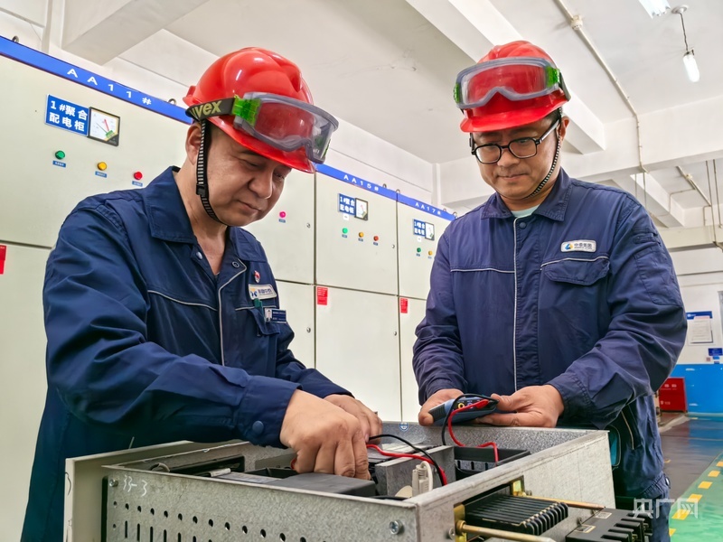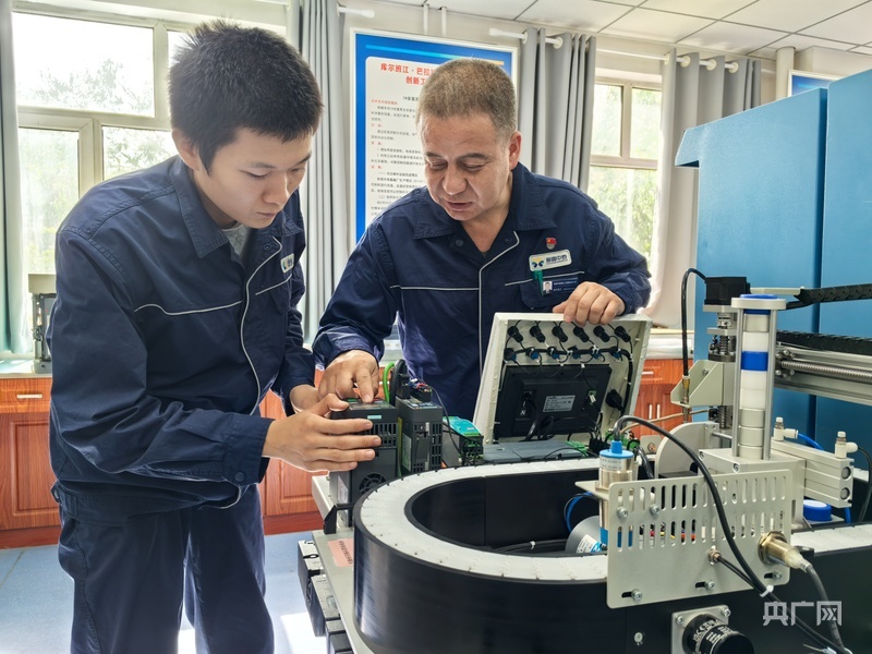 央广网乌鲁木齐9月24日消息(记者丁安)走进位于新疆乌鲁木齐市米东区的新疆华泰重化工有限责任公司库尔班江·巴拉提维修电工技能大师创新工作室,今年46岁的库尔班江·巴拉提正在带着徒弟做试验。