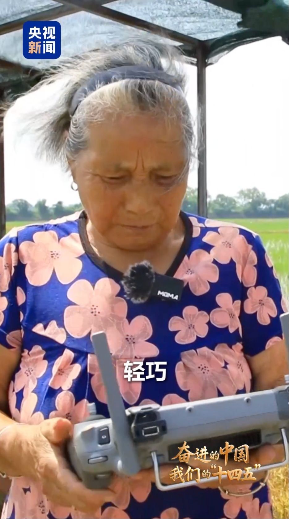 丰收靠“力”也靠“技”,农业科技的“创新”引擎正给中国大地带来蓬勃活力。在安徽省桐城市新渡镇老梅村,82岁的老奶奶戴淑英熟练“玩转”无人机帮孙儿照看田地。“我跟大孙子学的,大孙子管六七百亩地特别忙,我给他帮帮忙,这一点小事,轻巧!”一句“轻巧”不禁让大家为老奶奶的学习能力点赞,也感受到农业含“科”量提升带来的便利。中国式现代化,离不开农业农村现代化。像戴奶奶家这样的“新农人”正活跃在希望的田野上,无人机、大数据等新手段在他们手里玩得“轻巧”,这正是科技助农兴农最真实生动的写照。