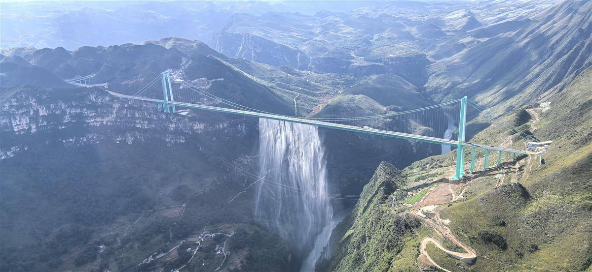 飞艇飞越“世界第一高桥”花江峡谷大桥。(记者王际凯、通讯员梅春艳 摄)