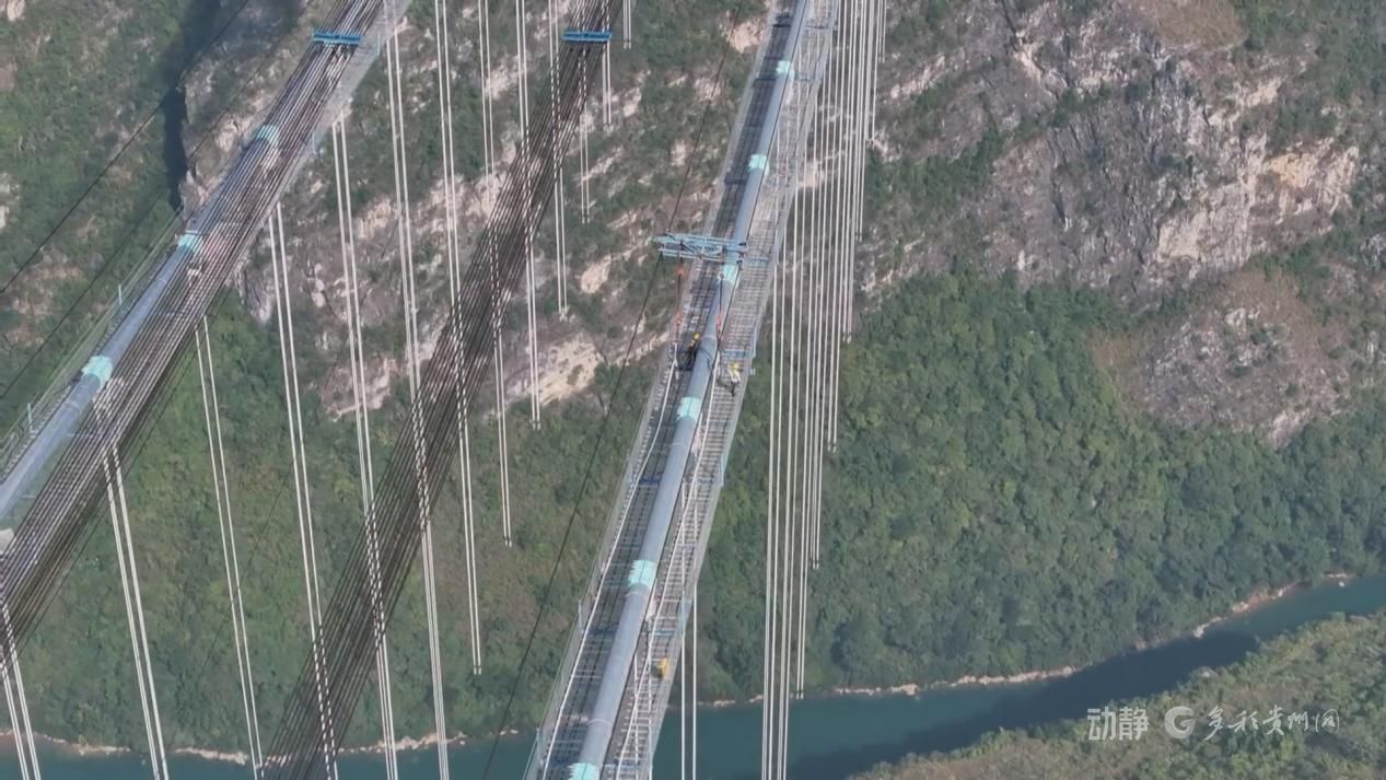 从9000多公里的高速公路到世界第一高桥的建设,不沿海、不沿江的贵州,用凿山开路的精神,辟出了建桥修路的全新技术。而这样的精神,同样体现在大桥的主缆建设上。