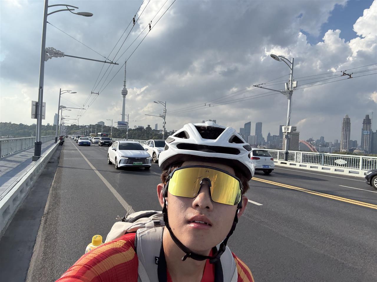 “我终于看到黄鹤楼了!”9月11日下午,费腾骑行至武汉长江大桥,不远处的黄鹤楼映入眼帘。沐浴着夕阳余晖,他最终抵达终点站——武汉工程大学。此次骑行贯穿东北、华北平原,穿过山海关,跨越黄河、长江,翻越大别山,沿途自然与人文景观十分丰富。