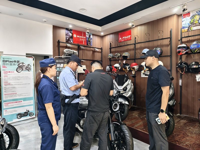 过程中,联合检查组以“宣传+提醒”为核心,对摩托车售卖点的消防设施配备、电气线路敷设、货物堆放间距等关键环节开展排查。针对部分售卖点为便利客户试驾临时存放汽油的情况,辖区派出所民警立即叫停违规行为,现场开展安全警示教育。联合检查组结合典型火灾事故案例,深入剖析违规储存汽油的安全隐患及法律后果,明确要求商户严禁在经营场所内储存易燃易爆危险品。涉事商户均意识到问题的严重性,表示将立即整改,严格遵守相关规定。