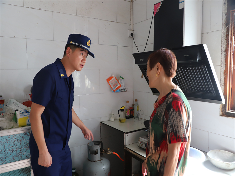 在入户宣传环节,消防救援人员结合家庭用火用电特点,仔细检查居民家中电线、插座、燃气灶具等设施,并以拉家常的方式,用通俗易懂的语言普及消防安全知识。“外出一定要记得关电源、关燃气”“厨房用火千万不能离人”“电动车绝不能在室内或楼梯间充电”……每到一户,消防宣传员都反复叮嘱居民注意日常消防安全细节,帮助查找火灾隐患,讲解防火、灭火、逃生相关知识。期间发现部分村民家中存在电线未穿管保护、液化气软管需更换等情况,消防救援人员及时对接村委会协调帮助整改火灾隐患,并叮嘱村民秋冬季节要注意用火用电安全。
