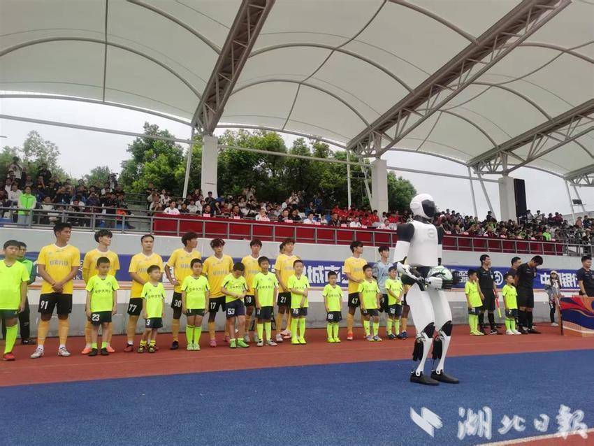 比赛现场,一个特别的开场仪式点燃了全场热情:由华中科技大学丁汉院士团队研发的“荆楚”机器人稳健步行20米后,双手托住足球,递给中国女足名将王霜。随着王霜轻巧地开球,这场汇聚高校活力与城市激情的足球盛宴正式拉开帷幕。