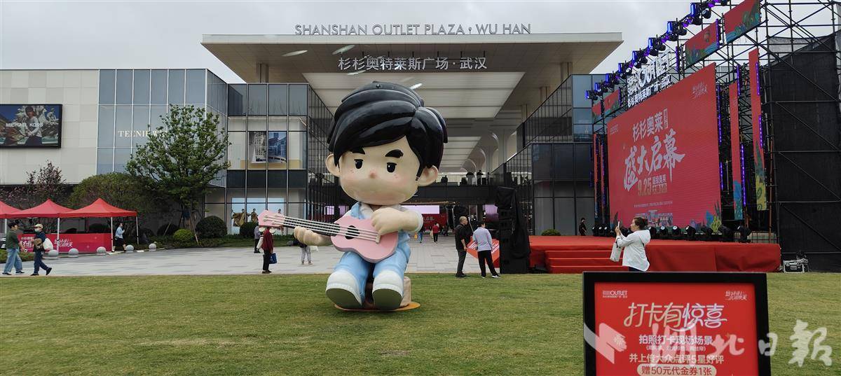 ▲武汉杉杉奥莱2号门草坪上,设计了周杰伦官方二次元形象。湖北日报通讯员 李岿 摄