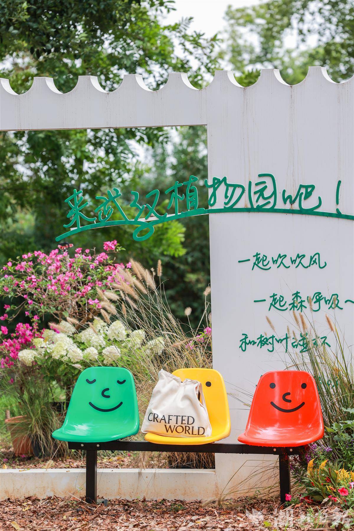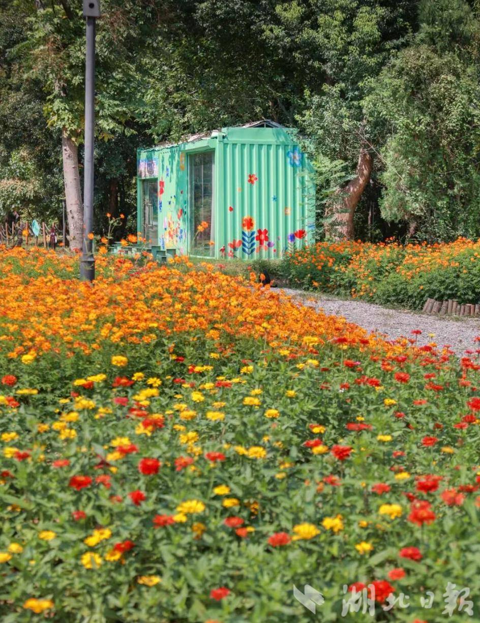 暖橙与明黄的硫华菊随风摇曳,映衬着百日草的斑斓花浪,与湖畔的光影相映,如诗如画。一大片的橙色、黄色、红色组成多巴胺活力花园,用明媚点亮了秋天。漫步花间小径,沐浴花香,感受自然与色彩的浪漫碰撞。