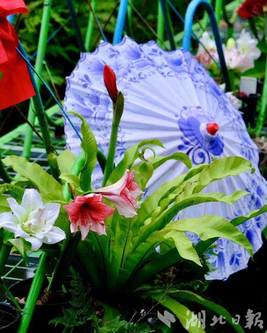 武汉植物园景观温室内,朱顶红也为国庆增添了喜庆氛围。