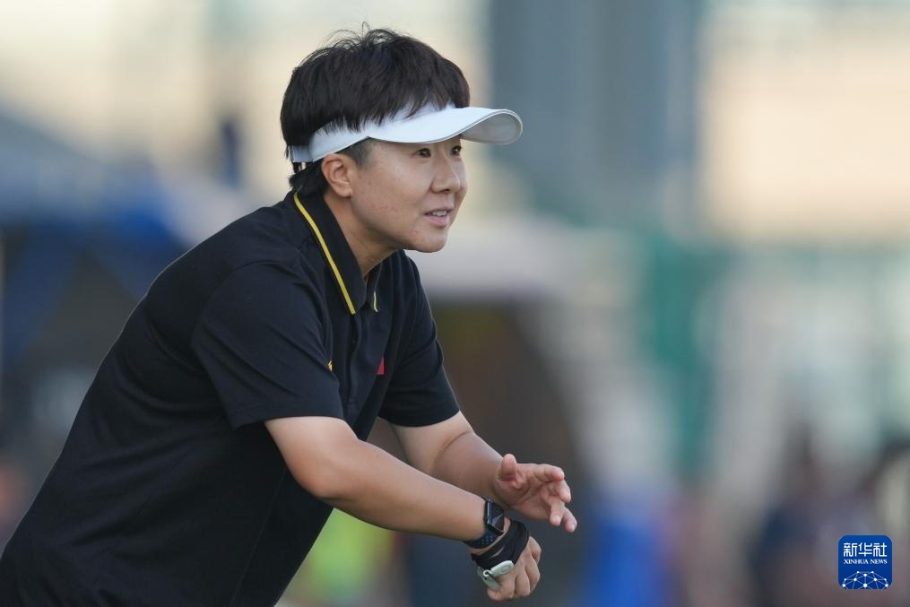 9月25日,北京师范大学女足主教练毕妍在比赛中指挥。