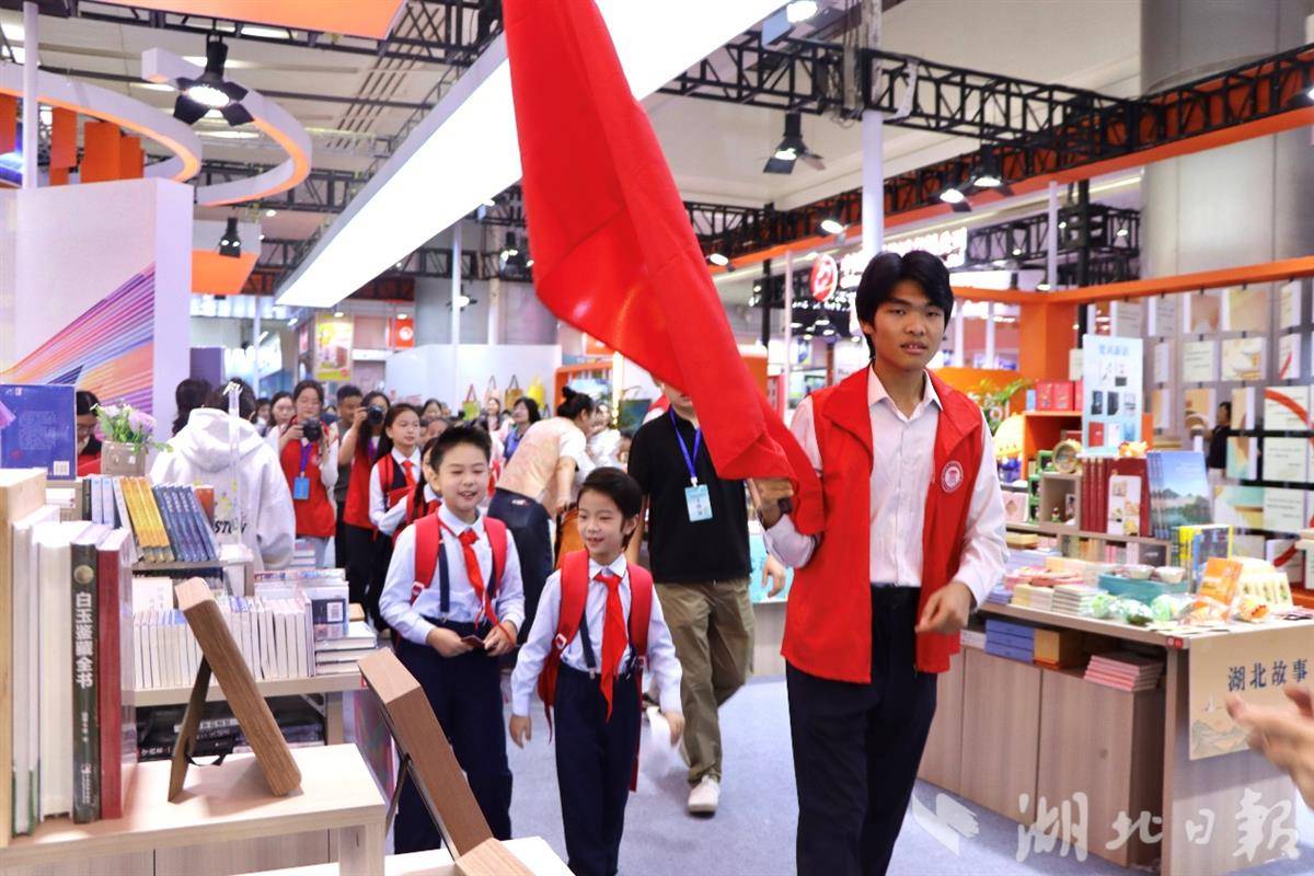 活动首站设在武汉书展,华中师范大学新闻传播学院红心宣讲团带领武汉市江岸区长春街小学、硚口区东方红小学、武汉英中学校等8所中小学的学生,参观了“真理之光”“三大精神”“学习强国数字体验”“倍阅书店红色主题图书文创”等特色展区,通过红色文化讲解、情景问答、大手拉小手共读红色经典、红色情景剧表演、红色经典电影配音秀等,引导青少年坚定理想信念、厚植爱国情怀。