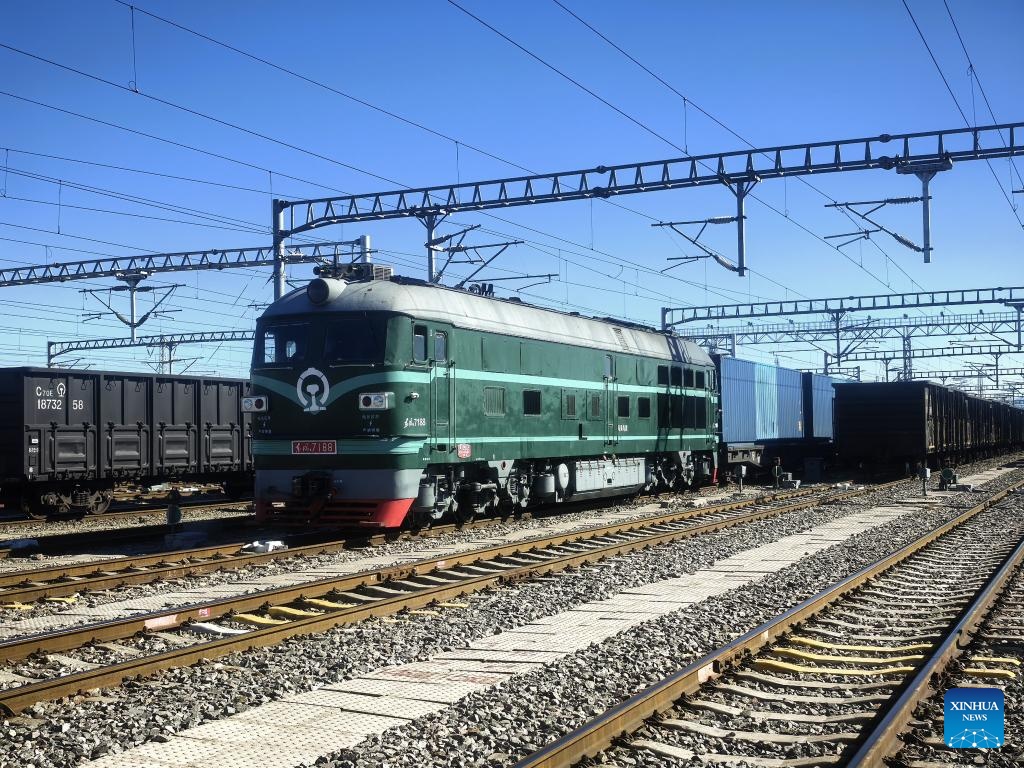 This photo taken on Aug. 25, 2025 shows a fully assembled China-Europe freight train waiting for departure at the standard-gauge yard of Horgos railway port in Horgos, northwest China's Xinjiang Uygur Autonomous Region. Xinjiang is seeing increased vitality across the board as the region accelerates its efforts to the construction of the New International Land-Sea Trade Corridor, a key logistics network connecting China's western regions to global markets.