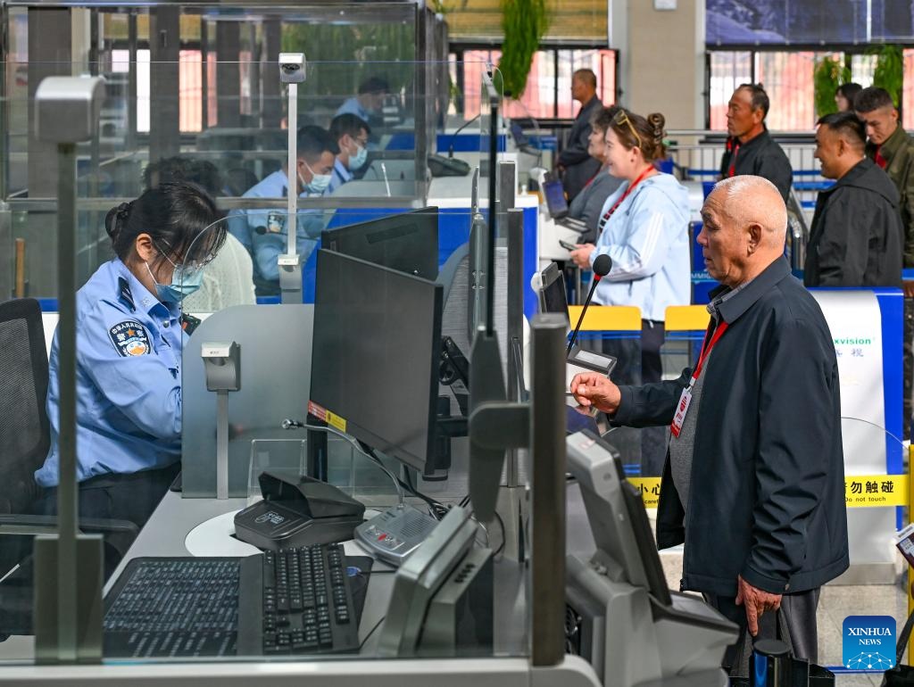 An immigration officer handles entry formality for a passenger from Kazakhstan at Bakti port in Tacheng, northwest China's Xinjiang Uygur Autonomous Region, Sept. 17, 2025. Xinjiang is seeing increased vitality across the board as the region accelerates its efforts to the construction of the New International Land-Sea Trade Corridor, a key logistics network connecting China's western regions to global markets.