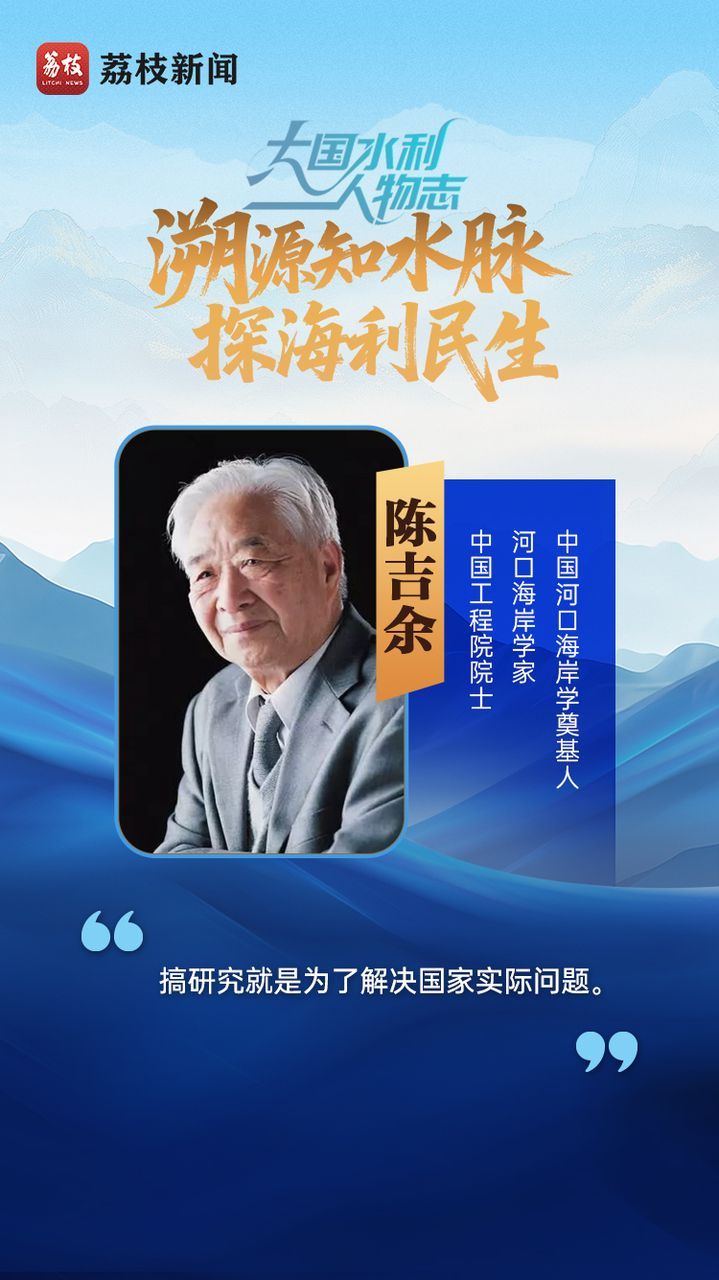 陈吉余,我国河口海岸学奠基人。1952年,毕业于浙江大学史地系的他来到华东师范大学教书,同时开拓研究项目。他创建了我国第一个河口海岸研究机构,开拓了以动力、沉积、地貌相结合为特色的河口海岸学科体系。几十年的科研历程中,他始终身体力行,在河口治理、海岸工程、围海工程等方面取得了重要成果,解决了许多工程建设中的实际问题。“浦东机场的外移和九段沙引鸟”为国家节省了3.6亿元投资和大量土地,“长江河口建设青草沙江心水库”为上海市解决水源开辟了新途径。2017年,陈吉余逝世,享年97岁。