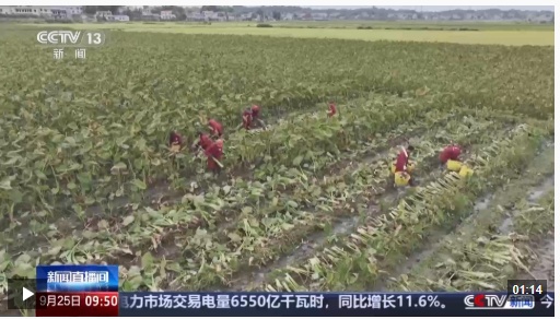 湖南宁乡市大成桥镇的3000多亩香芋进入采收期。村民采收、分拣、打包、装运,田间一派繁忙的景象。