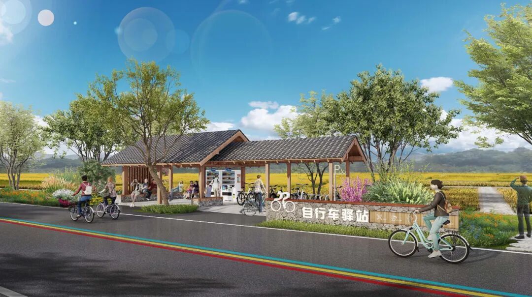 达力峒行驿站:依绿道而建,可供能量补给与休憩,窗外田舍连绵,兼顾休整与观景。