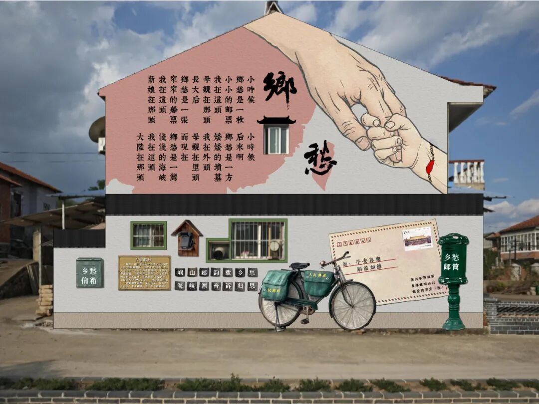 以墙体彩绘和旧物展示乡村记忆,如水壶、油灯等老物件,无声诉说着往日故事。