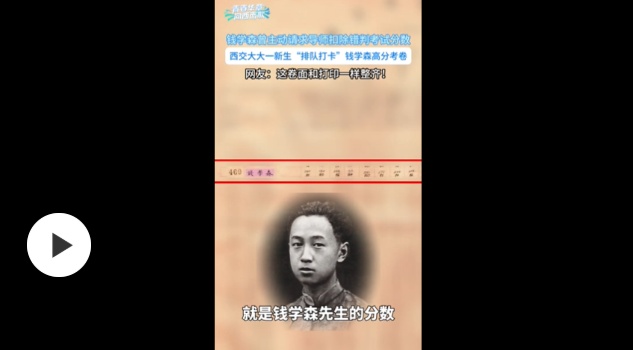 在西安交通大学西迁博物馆里,有一张1932年钱学森在交通大学机械工程学院总成绩第一名的成绩单,和一张1933年钱学森96分的“水力学”考卷,今年刚刚报到的西安交通大学大一新生们在参观博物馆时纷纷来此打卡。“钱学森曾在公式推导时因漏写一个‘S’被扣掉4分,在导师未发现的情况下主动向其承认错误并要求扣除相应分数,可见钱学森前辈之严谨、优秀”,一名来自西安交通大学人工智能学院的大一新生感叹。