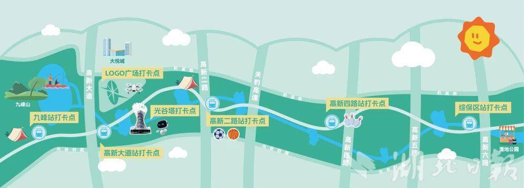 10月1日至10月8日,游客可搭乘光谷空轨串联五大站点,抵达七大活动点位,参与无人机静态展、智能机器人互动、花车巡游等主题项目,体验“科技感满格”的假日新感受。