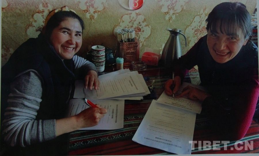 在阿里工作的新疆籍群众填写问卷 翻拍:赵钊