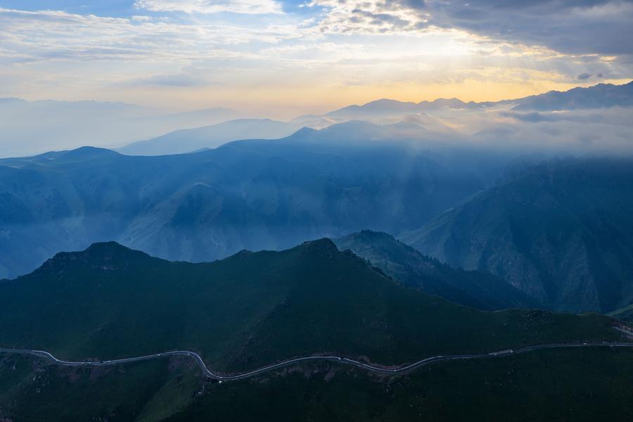 An aerial drone photo taken on July 15, 2025 shows a section of the Duku Highway in northwest China's Xinjiang Uygur Autonomous Region. Northwest China's Duku Highway, considered one of the most scenic roads in the country, sees a tourism boom in the summer. (Xinhua/Hu Huhu)