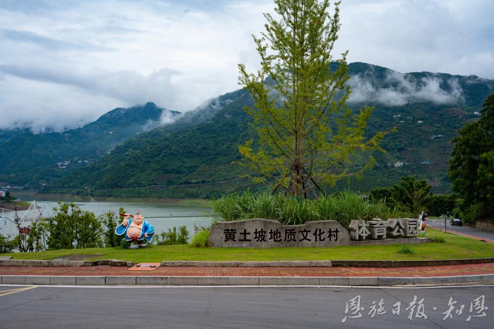 昔日的滑坡体上,黄土坡地质文化村体育公园拔地而起。( 恩施日报全媒体记者 田景文 摄)