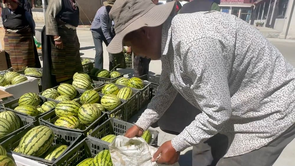 9月,在西藏日喀则市桑珠孜区年木乡罗林村,晒场上一派繁忙景象。村民们排起队伍,与收购人员并肩协作,将一个个圆滚滚的大西瓜挨个过秤、装车,7000斤西瓜被一次性收购。