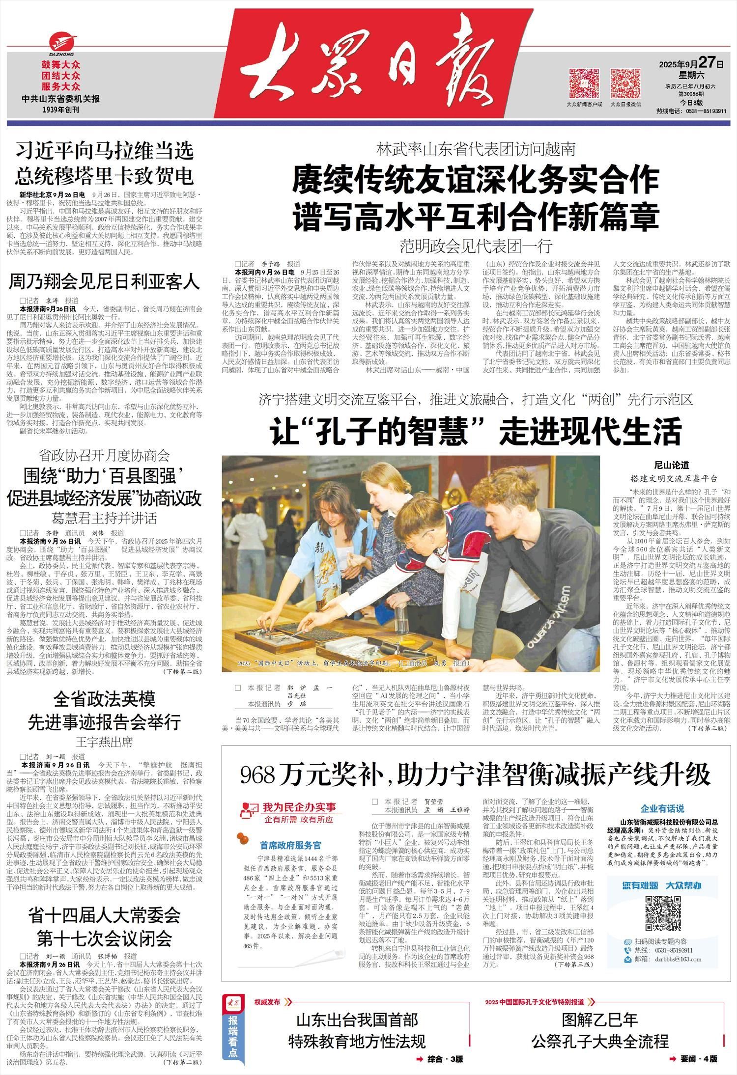 当70余国政要、学者共论“各美其美·美美与共——文明间关系与全球现代化”,当无人机队列在曲阜尼山鲁源村夜空回应“AI发展的伦理之问”,当小学生用流利英文在社交平台讲述汉画像石“孔子见老子”的内涵——济宁的实践表明,文化“两创”绝非简单新旧叠加,而是让传统文化精髓与时代结合,让中国智慧与世界共鸣。