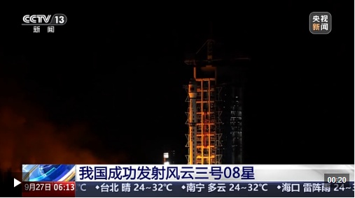9月27日3时28分,我国在酒泉卫星发射中心使用长征四号丙运载火箭,成功将风云三号08星发射升空,卫星顺利进入预定轨道,发射任务获得圆满成功。这次任务是长征系列运载火箭的第596次飞行。