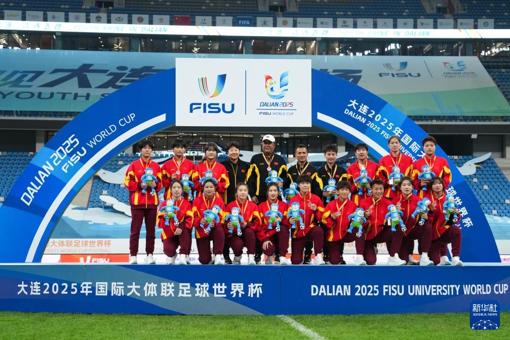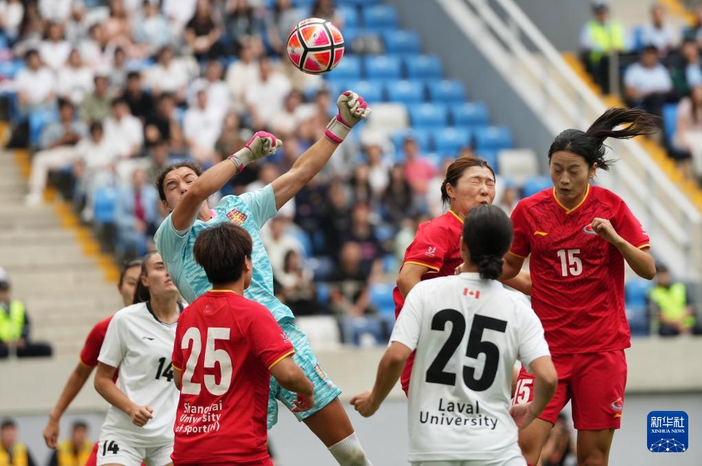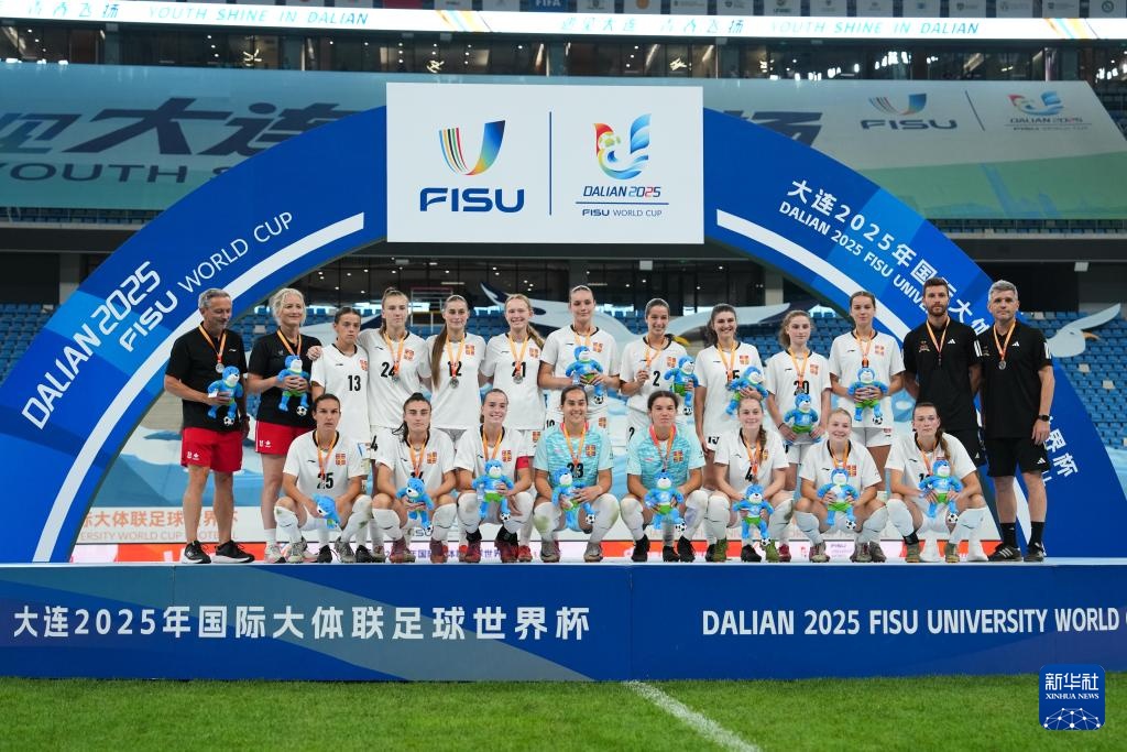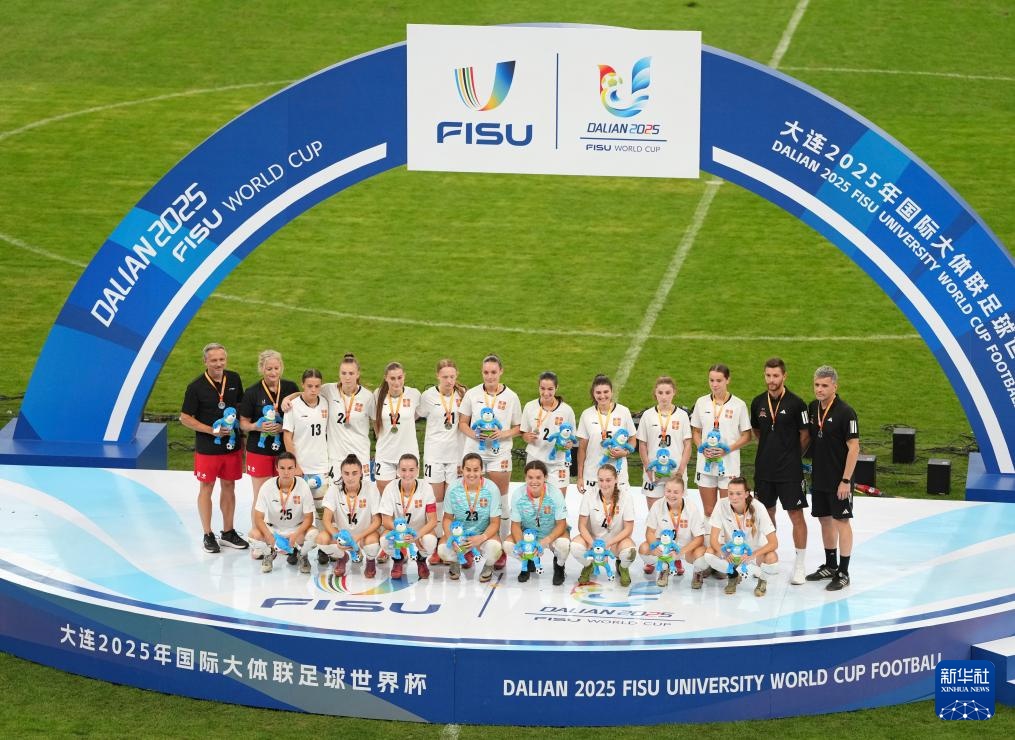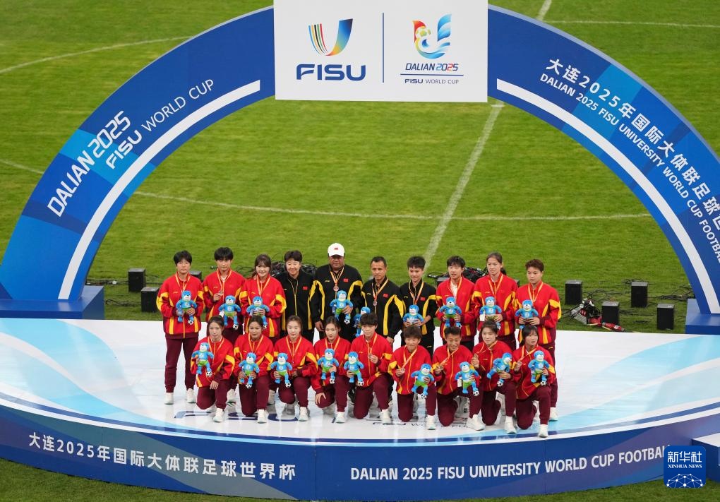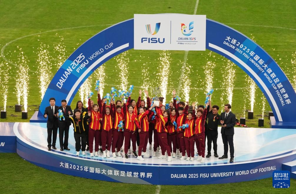 当日,在大连举行的2025年国际大体联足球世界杯女足决赛中,中国上海体育大学女足3比1战胜加拿大拉瓦尔大学女足,夺得冠军。