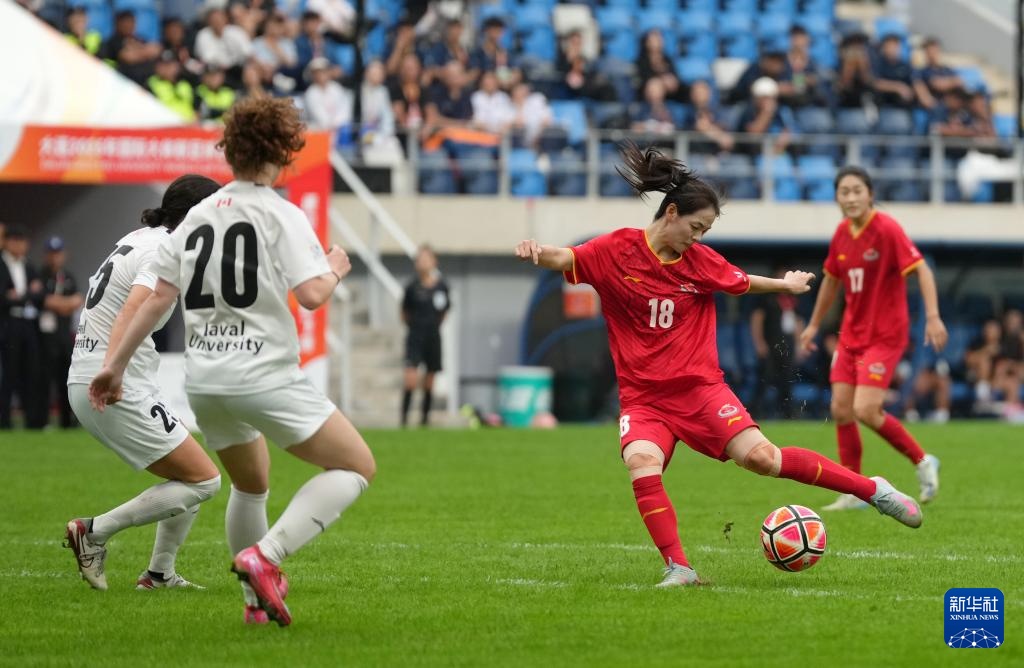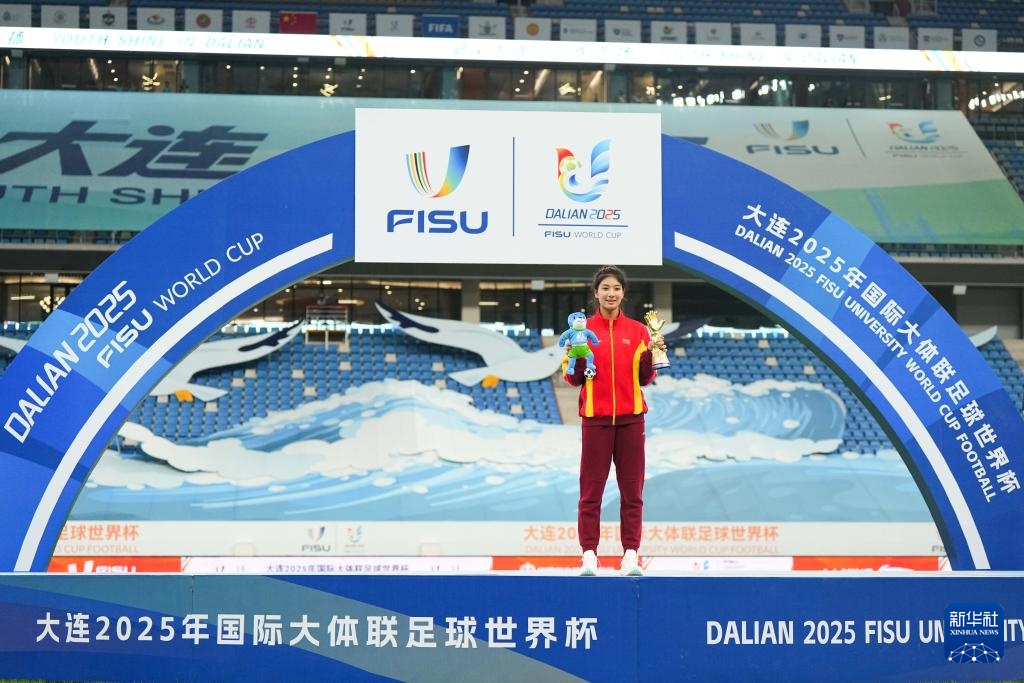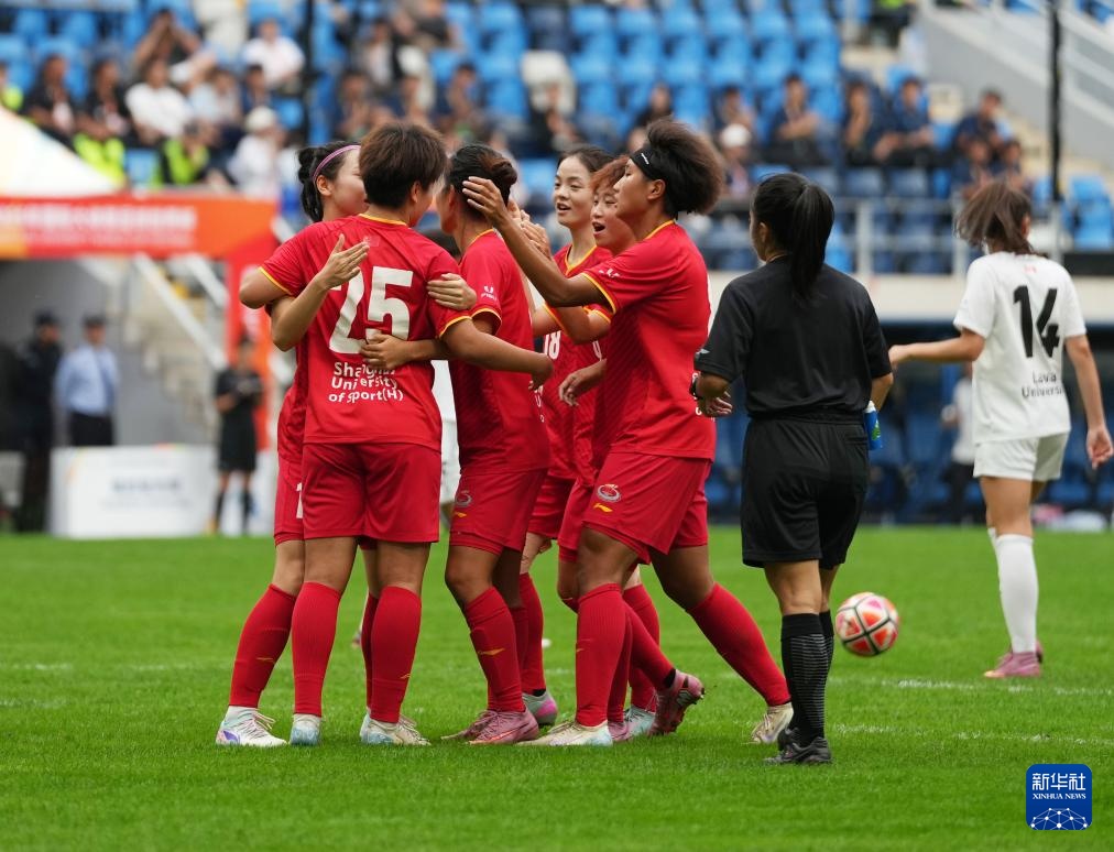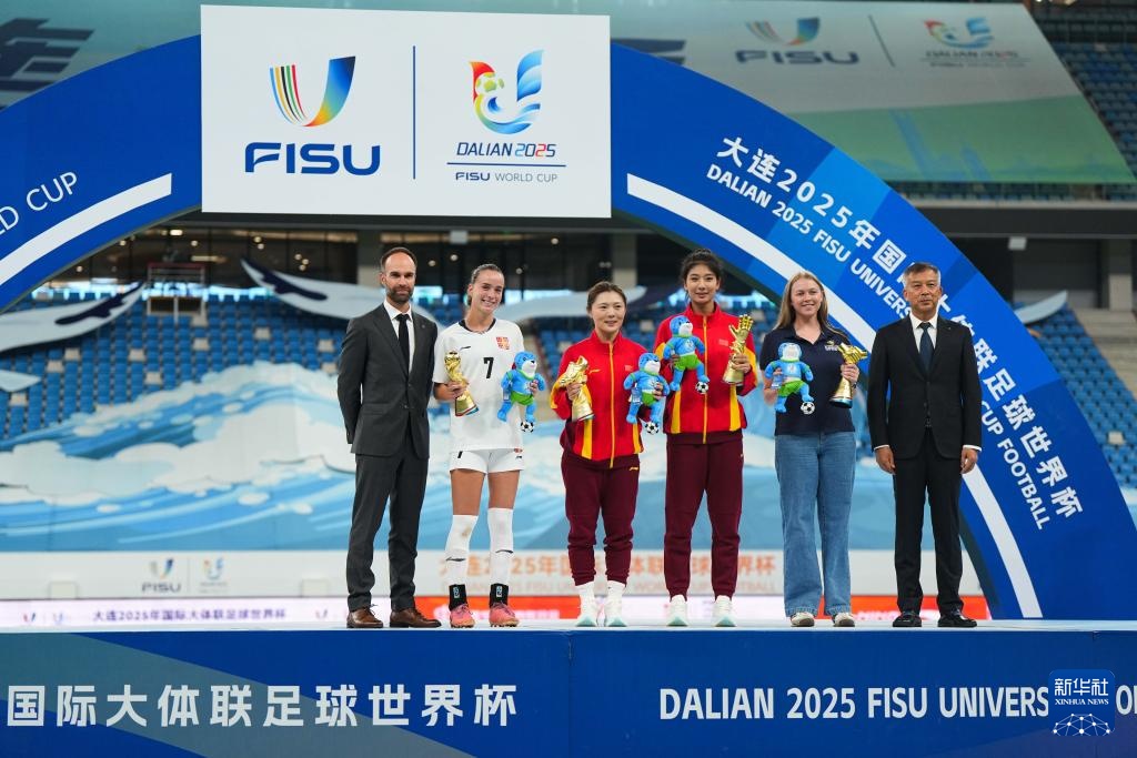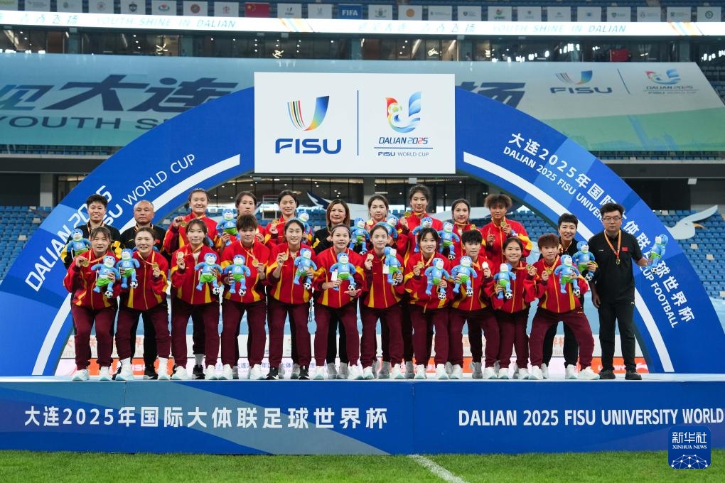 当日,在大连举行的2025年国际大体联足球世界杯女足决赛中,中国上海体育大学女足3比1战胜加拿大拉瓦尔大学女足,夺得冠军。