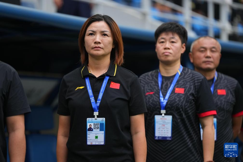 9月27日,上海体育大学女足主教练叶志竞(左)在赛前。