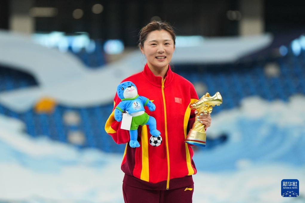 9月27日,获得最佳守门员的上海体育大学女足守门员刘晨在颁奖仪式上。