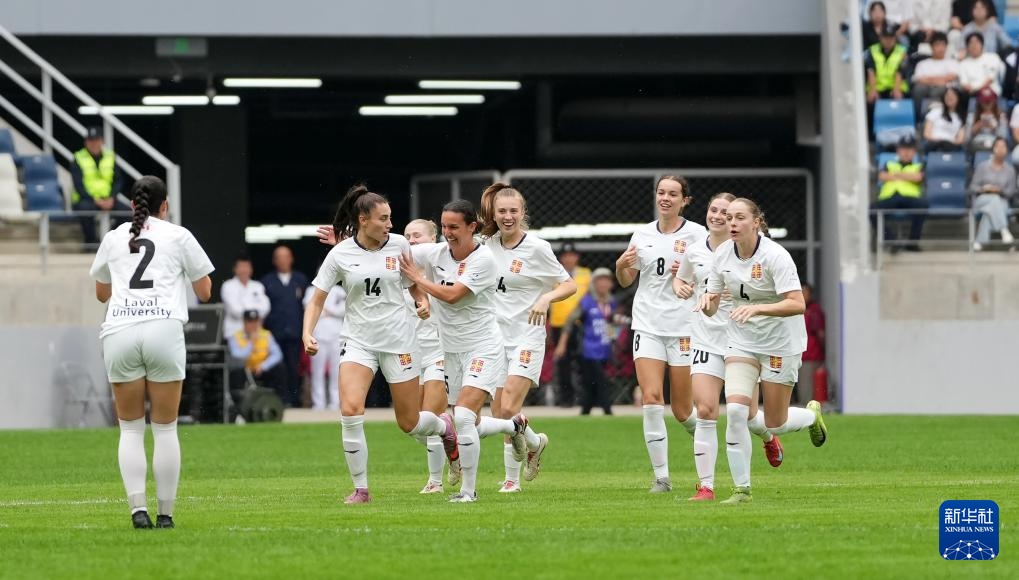 9月27日,拉瓦尔大学女足球员庆祝进球。