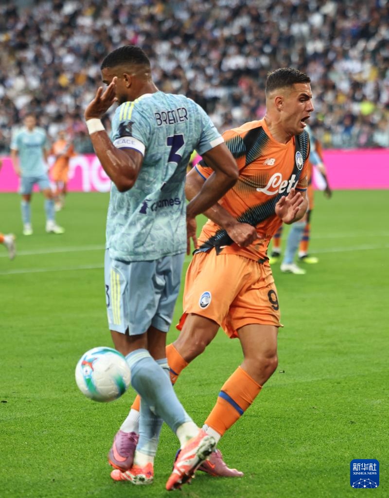 9月27日,尤文图斯队球员布雷默(左)与亚特兰大队球员克尔斯托维奇在比赛中拼抢。
