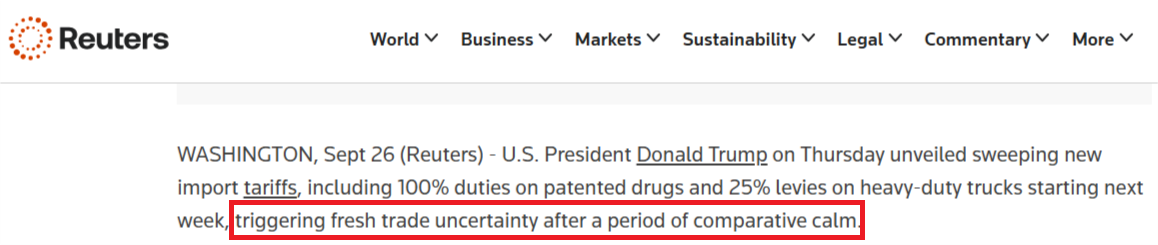 当地时间9月25日,美国总统特朗普在其社交媒体上宣布,自10月1日起,美国将对进口的所有品牌或专利药品征收100%关税;对所有厨房橱柜、浴室柜及相关产品征收50%关税、软体家具征收30%关税;对在美国境外生产的重型卡车征收25%关税。此举引发外媒广泛关注与质疑。