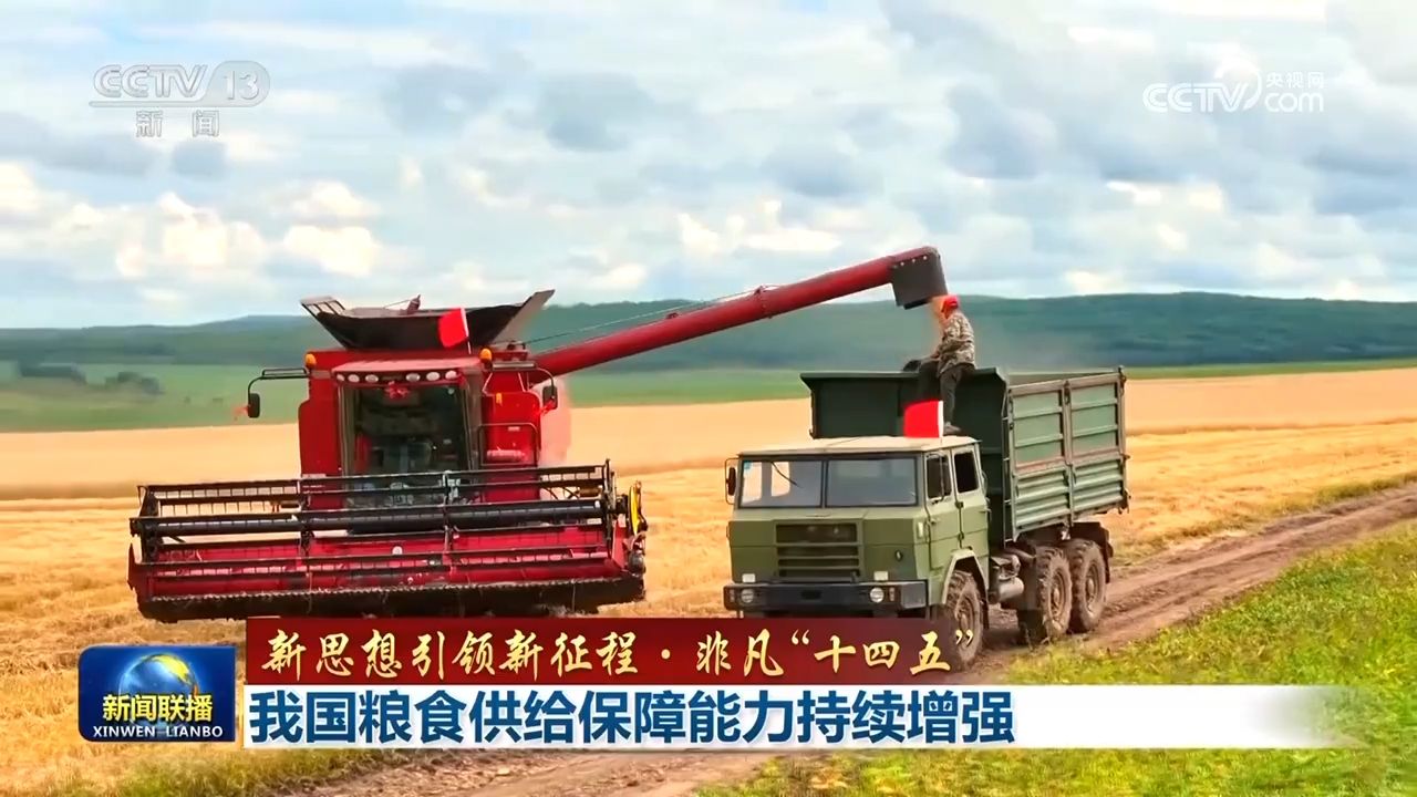 “十四五”期间,从物质基础到机制保障,我国全方位夯实粮食安全根基,粮食年产量稳定在1.3万亿斤以上,2024年首次迈上1.4万亿斤新台阶,14亿多中国人的饭碗端得更牢。