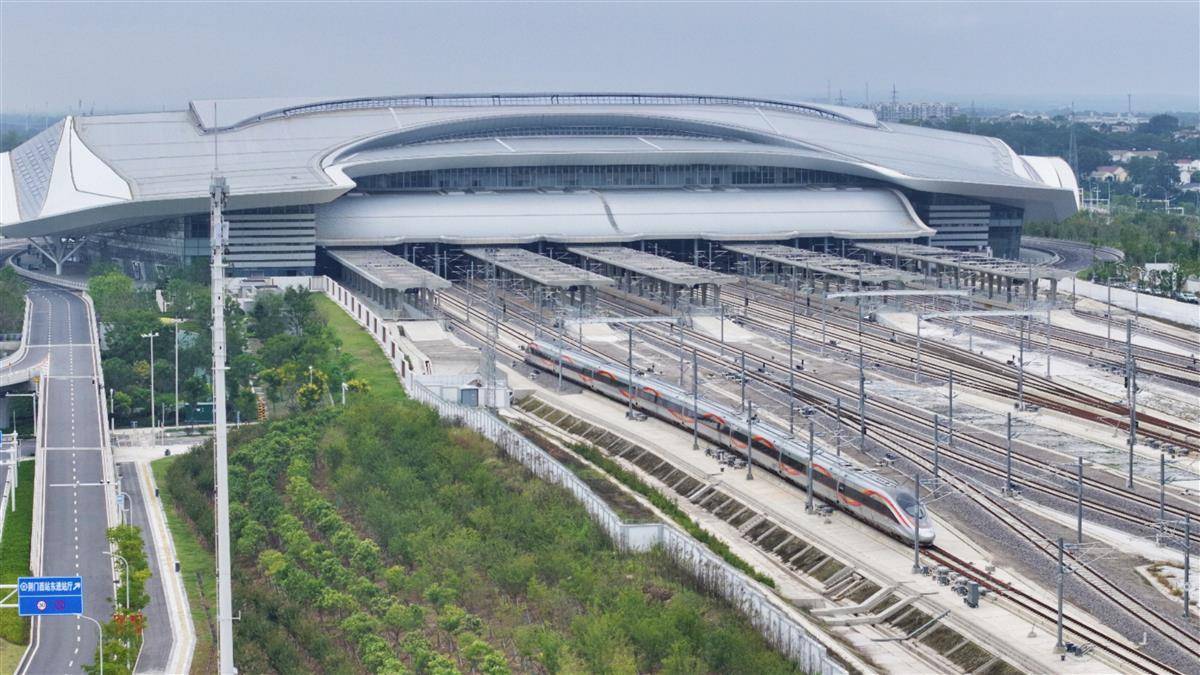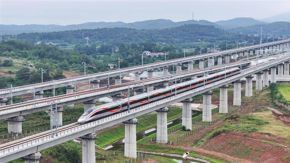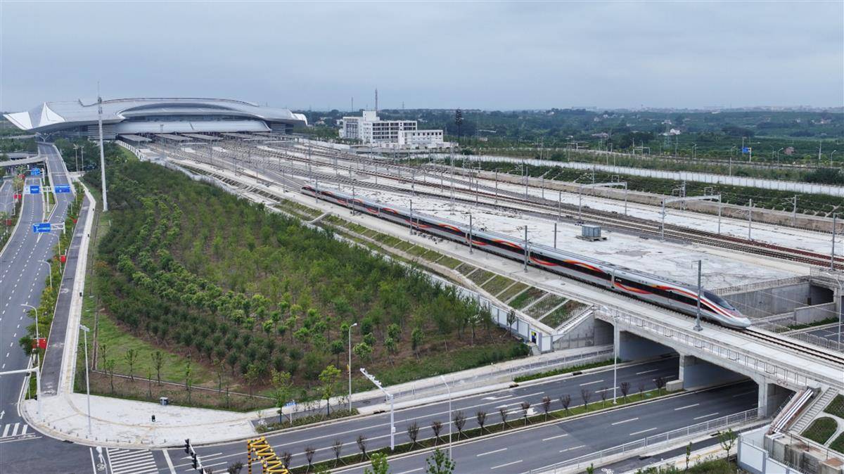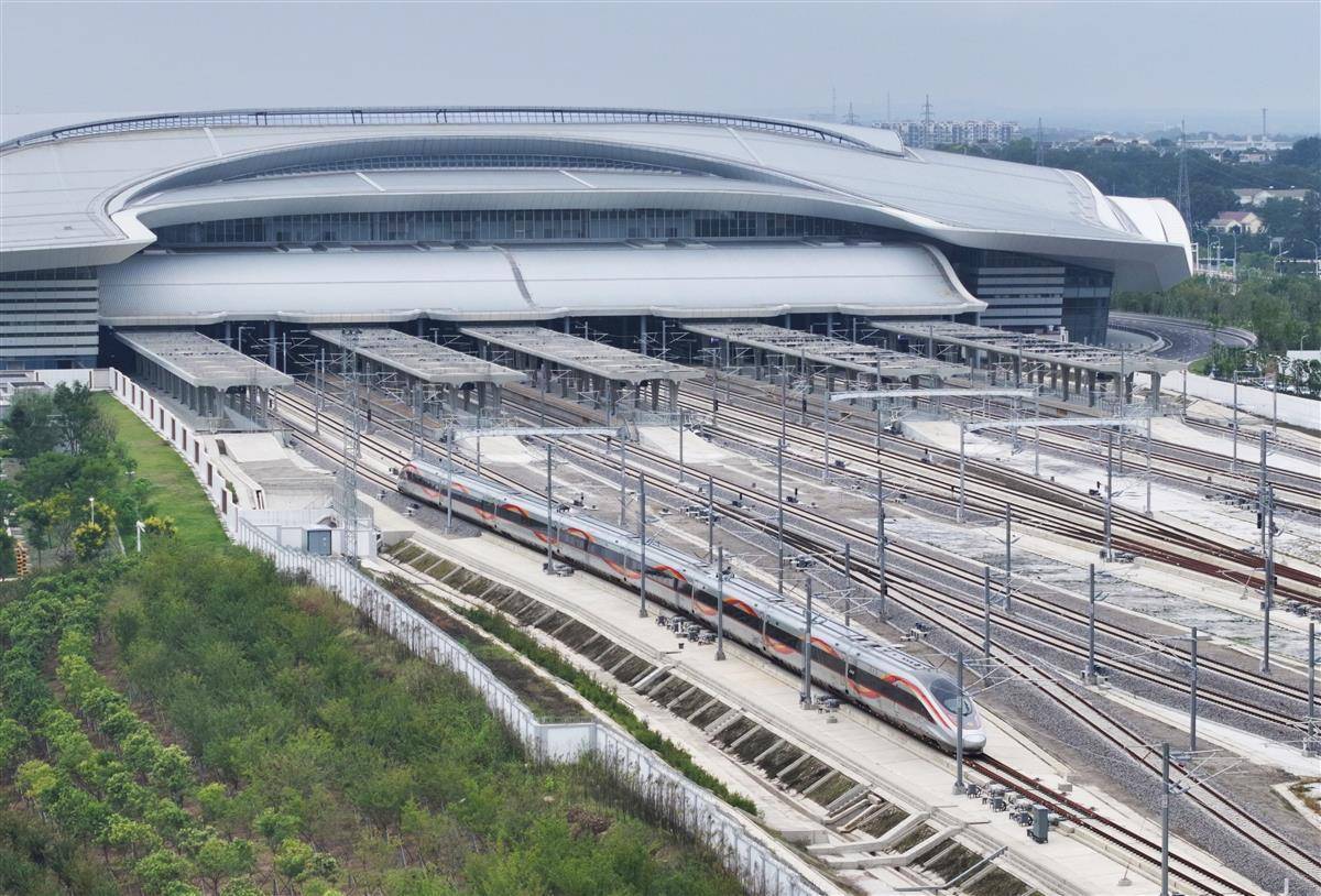 9月28日12时许,襄荆高铁(襄阳至荆门)首发列车G6855次驶入荆门西站,稍作停留后开往终点汉口站,这标志着鄂西新动脉正式贯通。该线路全长116公里,设计时速350公里,襄阳至荆门最快29分钟可达。作为“八纵八横”高铁网呼南通道的重要组成部分,其开通将加速鄂中城市群联动发展。(湖北日报全媒记者 陈少哲 摄)