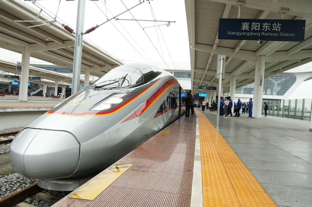 襄荆高铁起自郑州至重庆高铁襄阳东站,接入沪渝蓉高铁武汉至宜昌段荆门西站,全长116公里,设计时速为350公里。全线共设襄阳东站、宜城站、荆门西站3座车站,其中宜城站为新建车站。自2022年9月开工建设以来,各参建单位和广大建设者科学有序推进工程建设,建成了宜城汉江特大桥、石门水库特大桥等重点工程,确保了线路如期开通。