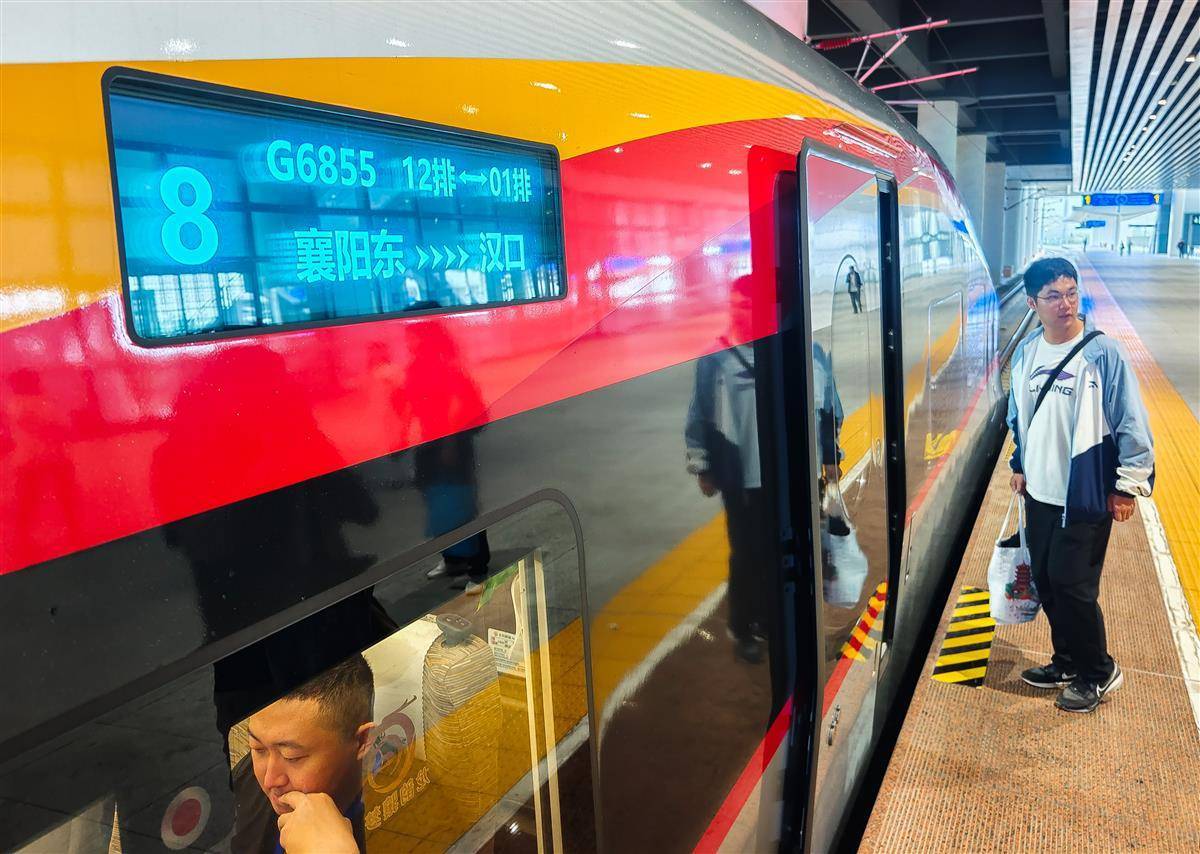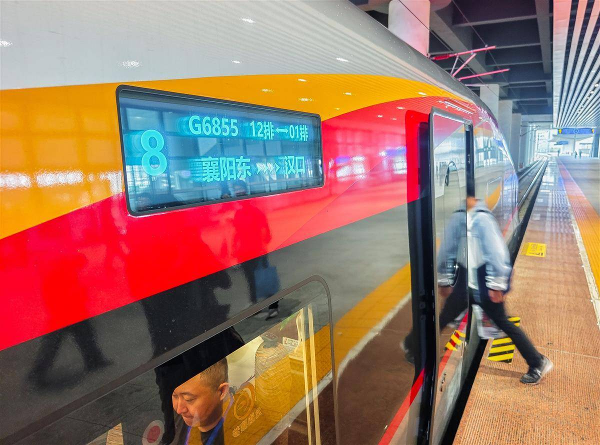 9月28日,旅客在襄阳东站登上襄荆高铁首发列车G6855次。(湖北日报全媒记者 柯皓 摄)