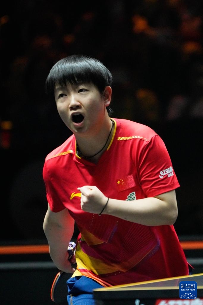 9月28日,孙颖莎在比赛中庆祝得分。