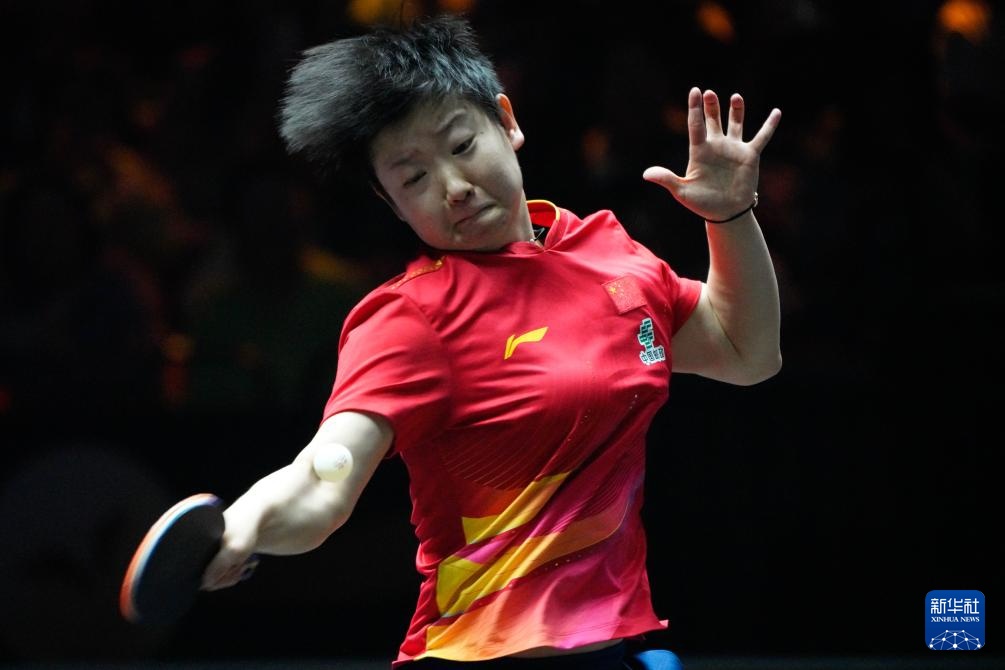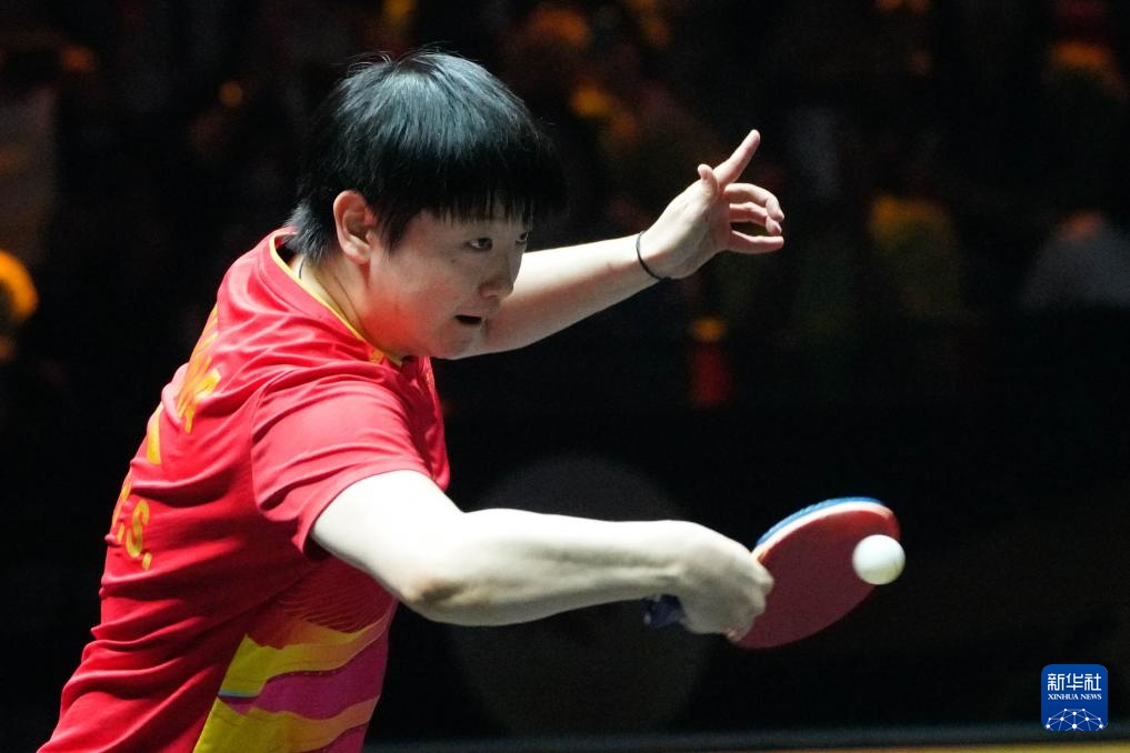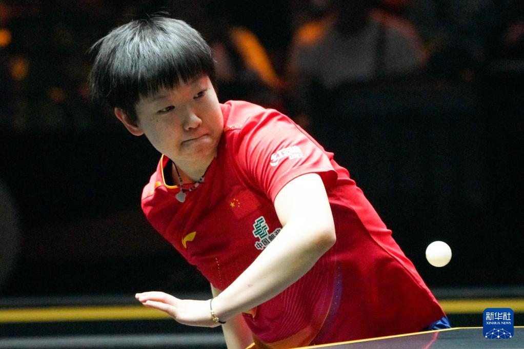 9月28日,孙颖莎在比赛中回球。