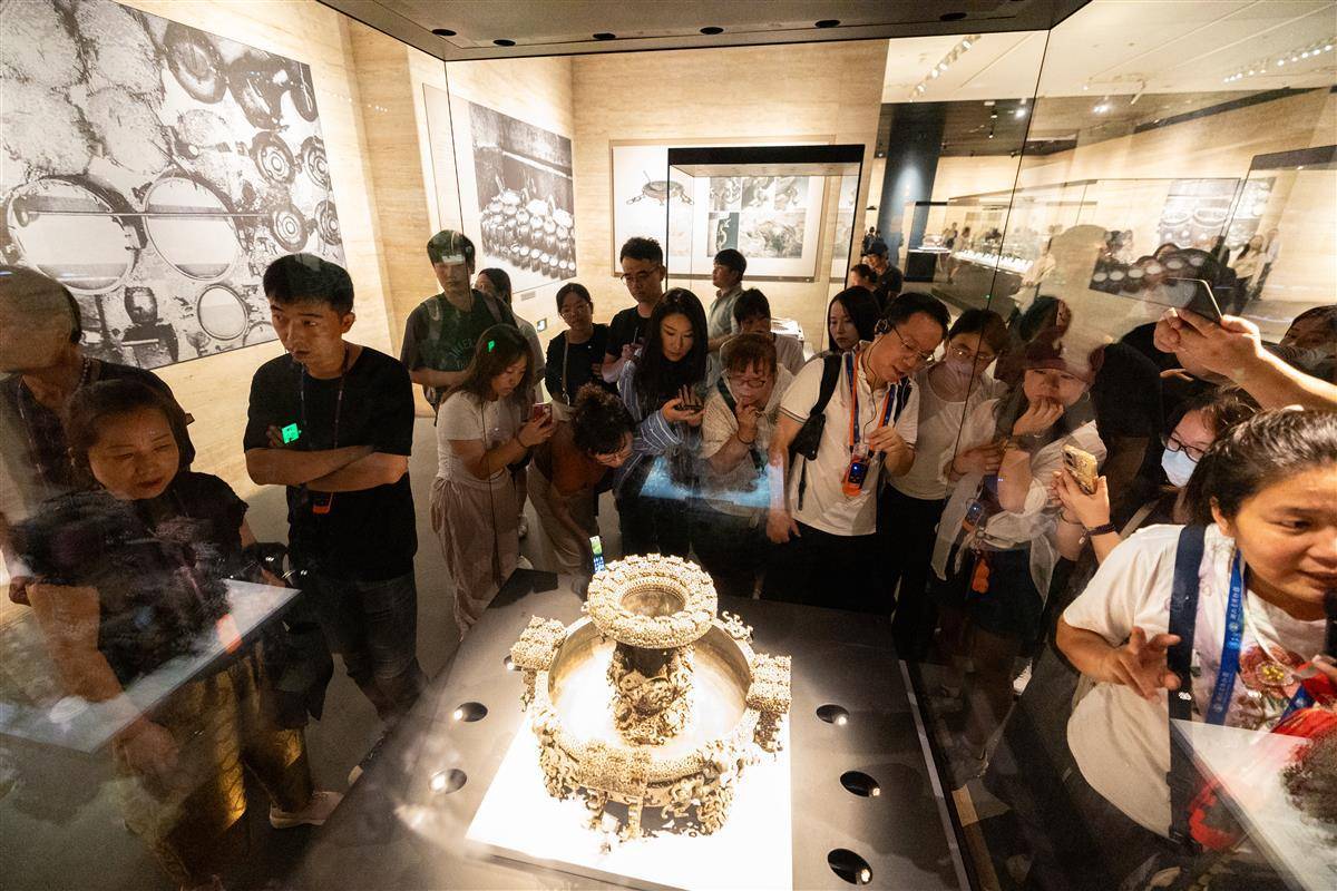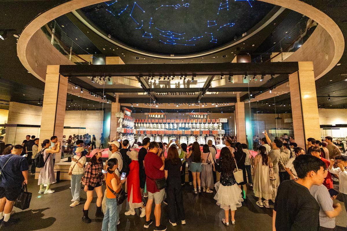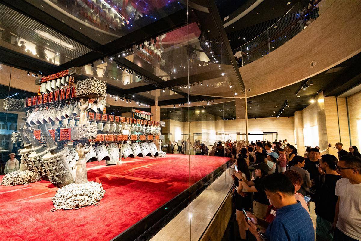 9月28日,十一长假到来前夕,湖北省博物馆内人声鼎沸,提前进入爆满模式,大批游客慕名前来一睹荆楚文物,感受浓浓的荆楚文化氛围。据了解,为更好地满足游客观展需求,10月1日-10月5日、10月7日,湖北省博物馆将开放夜游。10月6日中秋节当天,夜游时间还特别延长。(湖北日报全媒记者 何宇欣 实习生 曹若妍 摄)