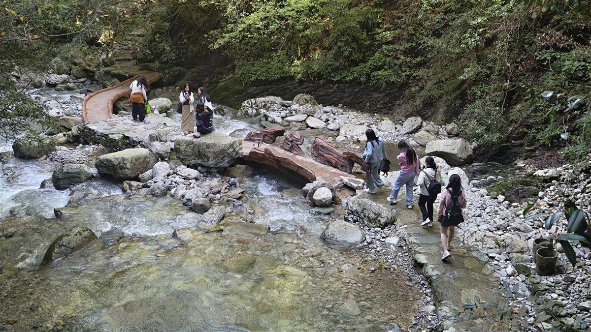 襄阳保康五道峡景区历经全面升级改造后,于9月23日开始试运营。本次改造以“文化赋能+科技沉浸”为核心,深度融合“卞和寻玉”历史传说与喀斯特地貌奇观,景区设施全面优化,为游客提供集自然奇景、文化溯源、科技互动于一体的全新旅程,重塑老牌景区吸引力。(湖北日报全媒记者 陈少哲 摄)