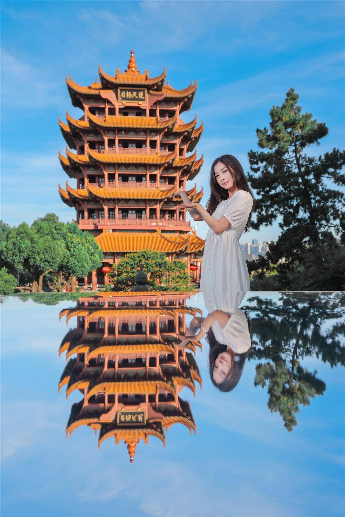 黄鹤楼公园新增“天空之境”,清澈的镜面完美倒映着千年名楼,游客能完美拍摄与黄鹤楼同框的倒影照片。(景区供图)
