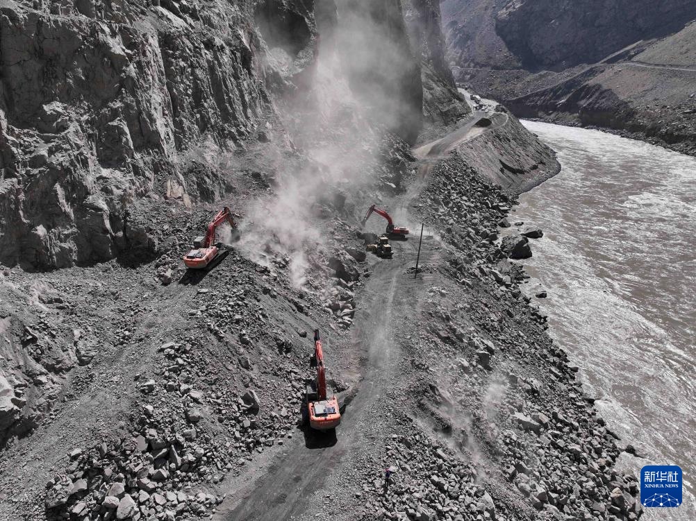沿途记者看见,大部分山体石质松脆,几乎没有任何植被,坍塌是家常便饭,在上面修路可谓难上加难。当地人常说,老天爷不赏饭吃。但中国建设者们偏不信这个邪。