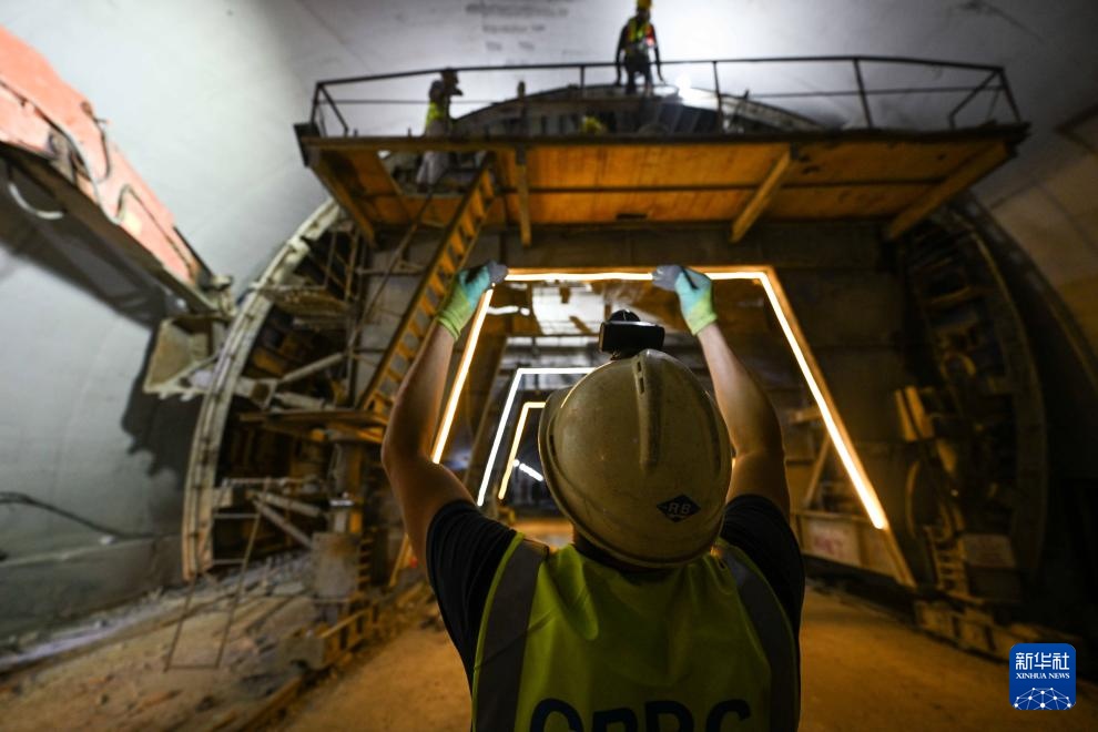 9月11日,工人在塔吉克斯坦卡拉依洪姆村附近的中塔公路二期工程1号隧道施工现场工作。 新华社记者 李任滋 摄