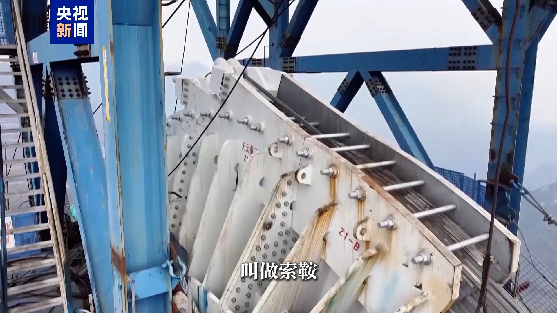 大桥上青绿色的主缆就像两根坚实的扁担,牢牢地承托着桥面上的荷载。如果说主缆相当于扁担,那么桥两侧桥头的主塔就像是扛着扁担的肩膀。为了给“肩膀”减负,专门特别制作了索鞍,它就像在双肩之上盖上了一层海绵垫,起到缓冲的作用。
