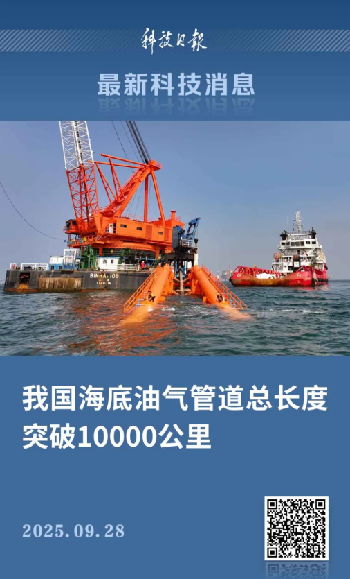 9月28日,中国海油对外宣布,我国海底油气管道总长度成功突破10000公里,跃居世界前列,标志着经过40年技术攻关与工程实践,我国海洋油气管道工程技术与装备能力实现全方位跨越,对加快海洋油气资源开发、提升国家海洋能源自主保障能力具有里程碑意义。