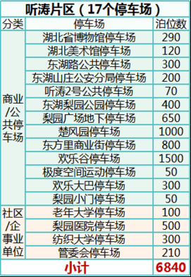 听涛片区设有17个停车场,共6840个停车泊位可供选择。