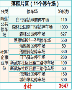 落雁片区设有11个停车场,共3547个停车泊位可供选择。